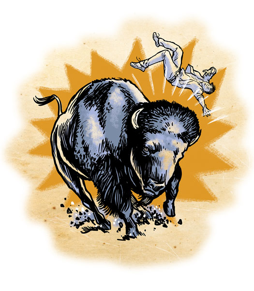 A foreign visitor was gored to death on July 31, 1983, in Hayden Valley because, according to the newspapers, he wanted to get his picture taken with a bison, a solitary bull. Alain Jean Jacques Dumont, 21, of toulouse, France, was having his picture taken about six feet from the buffalo when it charged and gored him, tossing him ten feet into the air.
