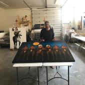 Each day would start with working on canvases from the night before and I will work on several pieces at a time. Then around 2 or 3 in the afternoon, I will break and read mail, art magazines, and consult with my daughter, Sunny Sky, about our schedule coming up, deadlines etc.; any art business she takes care of. A nap might be in order. I enjoy painting at night as this is a special time of quiet and inspiration for me.