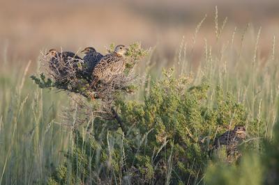 Unlike Ringed-Necks, grouse species found in the Montana are entirely native. On the plains, Greater Sage Grouse and Sharp Tailed Grouse habitats overlap, the Sage Grouse requiring extensive areas of Artemisia (sagebrush) to survive. This is by far our largest grouse weighing in at four to seven pounds. Because of declining habitat, the future of this creature is uncertain. Along with the Sharp Tail, it is listed as a Species of Concern by the State of Montana. Alas, many grassland-dependent birds are not faring well because of habitat loss over time. Male Sage Grouse are well known for elaborate mating displays, which some Native American dances ceremonially mimic.