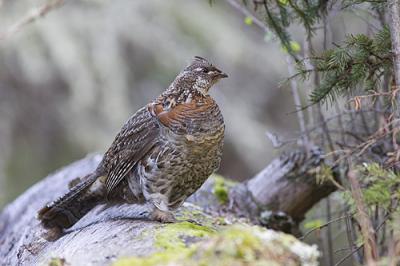 Gaining elevation, we arrive in the realm of the mountain grouses: the large slate-colored Sooty Grouse in the foothills, the mottled, fan-tailed Ruffed of the montane forest zone, Franklin’s Grouse in the subalpine and finally, the relatively rare White-Tailed Ptarmigan. This bird is strictly a creature of alpine-arctic habitats, mostly confined to high tundra along the northern Continental Divide. Each of the mountain birds have similar life histories, feeding on a mix of insects and plant foods and living quiet lives on the ground. Part of what draws us to grouse is their adorable habit of freezing in place when they see us. In plain view the birds seem to be thinking, “If I don’t move, I will not be seen.” It is a ploy that often works...except when done completely out of context, such as along a forest road where they often stick out like a sore thumb. Presumably, this is why some species were dubbed, “Fool Hens” by early settlers. Anyone who has blindly stumbled upon a grouse in the woods knows they can explode into a furious burst of panicked flight. These moments can be terrifying, especially in grizzly country.