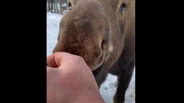 VIDEO: Puppyish Moose Walks Up, Licks Man's Hand