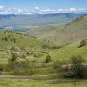 Over 100,000 visitors travel Red Sleep Mountain Drive to the National Bison Range each year. This one-way road loops over the Range and offers great wildlife viewing while passing through a variety of ecosystems and scenic views of the surrounding mountains and Mission Valley, less than an hour north of Missoula. Beginning on flat grassland, it ascends along a seasonal creek and montane forests of Douglas fir and ponderosa pine, reaching near the summit, and descending again through extensive prairie, finishing along Mission Creek and its riparian environment.