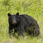 The chief predator is the coyote, and black bears and mountain lions are present as well. One early morning along Pauline Creek I came upon a black bear sow and three cubs. After a minute or so they bolted away up the opposite hillside, while I watched from my portable blind (my vehicle). It took another five minutes or so to notice a large cinnamon bear, presumably a boar, in thick brush only 20 yards from the car, which explained the entire encounter. These animals have a certain comfort level with vehicles, so I rarely get out to use my tripod. Use a beanbag in the car window and turn off the engine for sharp photos.