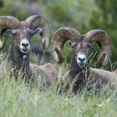 The large mammals are the main attraction. Bison were the original key species (see sidebar on page 34), and remain so. Bulls can be seen at any point along the way, and groups of cows and calves are scattered throughout depending on which area is being grazed at the time. A large bison bull took over the High Point Trail one August afternoon and prevented anyone from hiking to the summit, where one may encounter Bighorn sheep and take in the scenic 360 degree views — the Mission Mountains to the east, the Mission Valley looking north to Flathead Lake, and the Flathead River and Salish Mountains to the west.