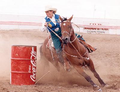 Women rarely ride broncs any more. According to Larry Jordan, whose Jordan Rodeo Company provided horses for rodeos in the United States and Canada, contemporary stock cannot be compared to that of the early twentieth century. Today’s horses are bred to be larger and more powerful. Although perhaps not as wild as the rangy, untamed stock of the past, it takes a large frame to ride them. Women do have the opportunity, but most focus on other kinds of skills. All-girl, high school, and college rodeos offer roping and riding events for women, but the only women’s event currently sanctioned by the Professional Rodeo Cowboy Association (PRCA) is barrel racing. Credit goes to Alice Greenough for forming her own rodeo company in order to feature the first women’s barrel racing competitions.