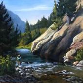 She focuses on sportsman’s art, wildlife and landscapes. Following her fly-fishing husband to trout filled streams has fueled her experiences as a plein air artist.