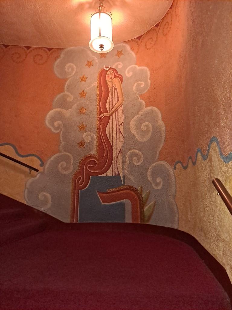 Today, the Washoe Amusement Company still owns the theater, and still shows movies seven days a week. For my part, I saw something called Monster Hunter there, and though the bombastic battles between monsters and monster hunters were plenty diverting, I was a great deal more charmed by the building itself, its stunning interior, murals, detailed relief work, carvings, and paintings. To tell you the truth, I paid to see Monster Hunter again several nights later, and though I'm no more sure whether the monsters or monster hunters won, I took the opportunity to explore more of the theater, to get as close as possible to the paintings and to what parts of the silk curtain are visible. In short, I went to drink it in.