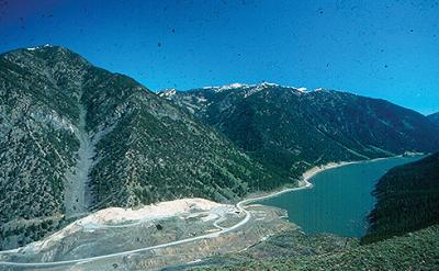 When water finally flowed through the spillway on September10, however, something was clearly amiss. The grade was too steep, and the rushing water quickly caused erosion. Work began anew, and on October 17, the new spillway at last carried the water from Earthquake Lake safely downstream, leaving the lake itself about 120 feet deep.