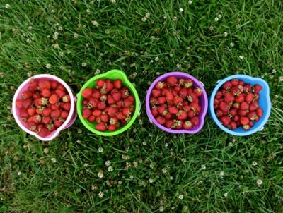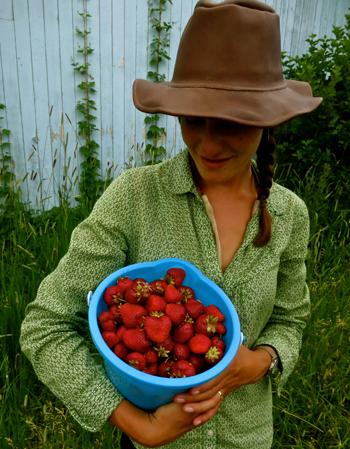 So I head east down Frontage Road to Rocky Creek Farm, just outside Bozeman. My friend, Anna, and I spend the afternoon harvesting strawberries under a hot July sun. That evening, I mash the fruit with the bottom of a Ball jar in a large plastic bucket. I add Camden tablets and pectin enzyme and leave the substance to settle for a couple of days.