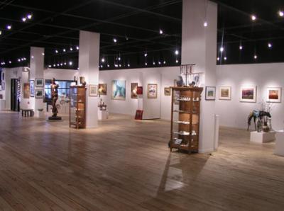 Once inside, the spaciousness of the gallery proper expands the view again. Often on display are larger-than-life Jonathan Qualban concrete-based statues that seem to be lighter than air itself, defying gravity and held together as if by magic. Also Joe Halko’s life-sized horse of driftwood and other wood pieces improbably swept together in odd grace, and several of his playful bronze bears cavorting on the floor.