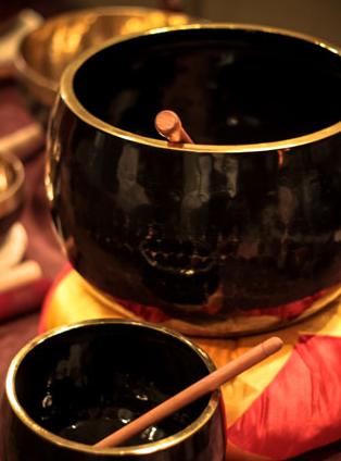“There is a language spoken between the crystalline structure of the body and the bowls,” explains Chambers, noting that psychic Edgar Cayce predicted sound would become ‘our new medicine.’ (Some physicians are already on board; Cornell oncologist Dr. Mitchell Gaynor has been using singing bowls for 20 years.) “The human body is made up of electromagnetic vibrations, and each atom has its own frequency,” wrote Cayce in 1928. Atoms vibrating “out of sync” can manifest dis-ease. Sound work helps release stuck patterns and increases the positive charge in cells, which promotes normal cellular division. It alters the neurotransmitter patterns of all five senses—the sound becomes the “carrier wave” upon which healing intentions ride.