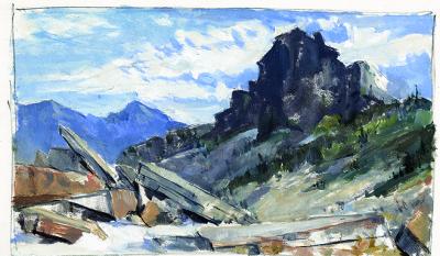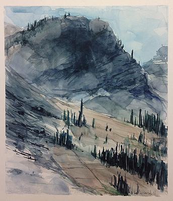 Rain can ravage a piece. Paints dry quicker on the palette but not on the paper in the thin, gusty mountain air.