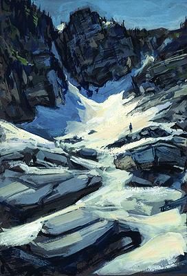 The limitations on everything but time encouraged experimentation and improvisation. One year, Shear scraped “watermelon snow”—an alpine algae that dyes the snow red where it grows—out of a cirque and used it as pigment in a painting.