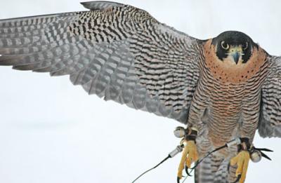 After five years as General, the falconer can get a Master license, which allows him or her to keep up to three birds. Both General and Master falconers can purchase birds that are bred in captivity for the sport. Hybrids between various falcon species are common, the most popular being a Gyrfalcon/Peregrine cross. Young birds that have been raised by people are called imprints, and they can become quite loyal and even affectionate. However, they may also be overly vocal and scream when they see their “parent.” For that reason, many falconers prefer that other birds in the breeding chamber raise the youngsters. At this time in Montana, all Peregrines used for falconry must have been bred in captivity. This however may change, as Peregrines were recently removed from the endangered species list; thus a Peregrine “take” from the wild will probably resume in the future.
