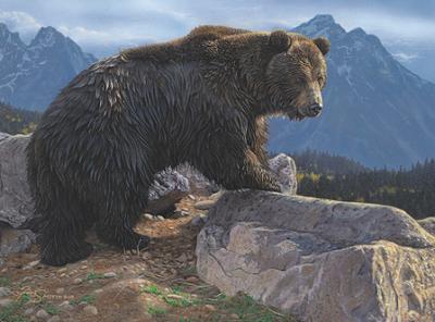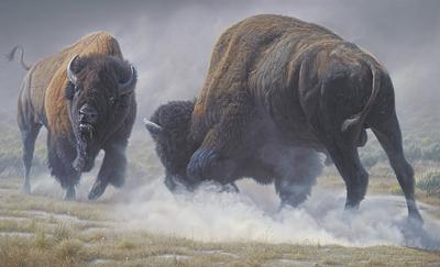 Both Smiths paint in acrylics, and both paint wildlife with exceptional realism. They travel together to Yellowstone National Park to observe and photograph buffalo, wolves, birds, and bears, and last year Adam took his first trip—Dan’s seventh—to Africa. As they present images of their work, they banter easily about whether or not Adam has successfully painted a bear standing in water.