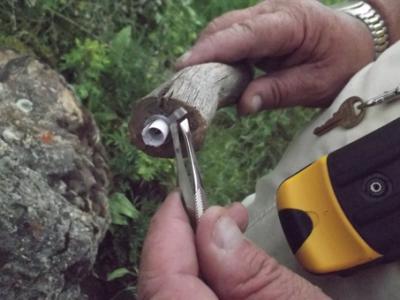 As we started down the trail at Caffrey Road, a half-mile before the hill heading down into Polson, I didn’t have to bike long to score our first find. The cache, named “Adopt Me,” offered one clue: “metal, rubber, wood.” We found a small strip of paper rolled up and stuffed into a drilled-out hole in a piece of wood, with a rubber stopper for a cork. We unfurled the paper and scanned the list of Geocachers who had come before us. Each log entry included the date and the finder’s call sign. We added ours to the bottom of the list. After rolling the paper back up and placing the cache exactly as we found it, Larry pulled out his GPS for details on the next hide.