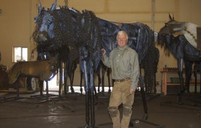 He created them all in 15 months. Once as he was sculpting them, he grouped a bunch in a semi-circle around him. There are no stallions — “too sensational or Hollywood-ish.”