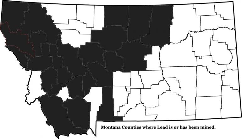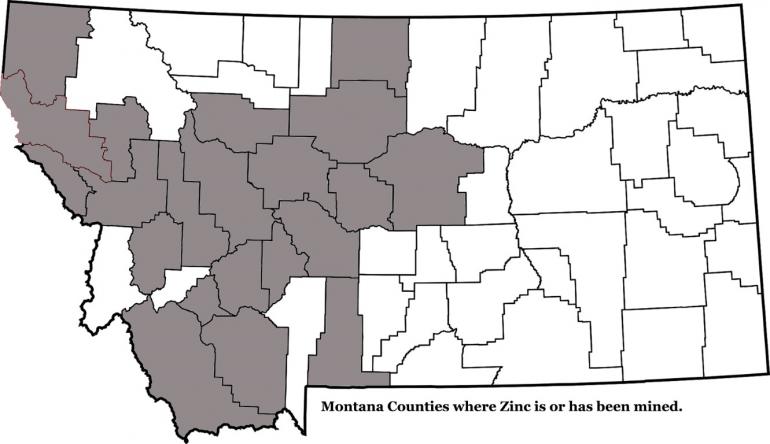Active mining takes place in 29 of Montana’s counties, and 26 minerals are mined in the Treasure State, the five most common of which are gold, silver, copper, lead and zinc. The sixth is uranium, with mines in 11 different Montana counties, although today none are active in Montana. Fifteen minerals are mined in one or two counties only, and platinum in only three.