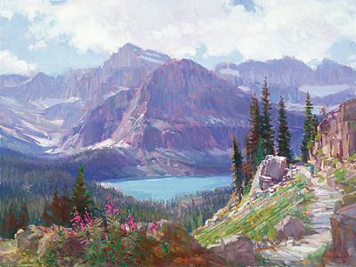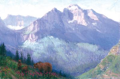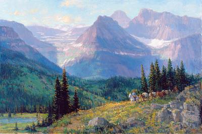 His own discovery of the West reflected the same feeling of euphoria-in-nature that would soon emerge in his mountain paintings. “He and his brother had been coming to the western states to deal in art, and on one trip they drove through Glacier. That’s how we got here,” says Joe Jr.
