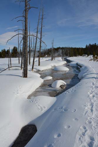 A most incredible phenomenon that should be experienced by any Montana resident or visitor at least once in a lifetime (though I recommend much more often) is the transformation of Yellowstone National Park (YNP) from a swarming tourist destination to a majestic winter wonderland. Snowcoaches, snowmobiles, and cross-country skiing become the predominant modes of transportation, and the solitude that can be found gives the feeling of being in a whole new park. The waterfalls change to magical ice cone sculptures, and the experience of seeing Old Faithful under a full moon in the deafening quiet is second to none. Snowshoes are rented, ice-skating commences, and winter wildlife safaris are booked.