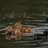 Within a few hours of the second birth, the adult cranes lured their babes into the water. They swam like it was an innate, lifelong adventure. Effortlessly, they manipulated their fluffy little bodies between the “forest” of cattails.