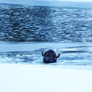 We strap the sucker onto the truck and haul butt home, just to wrestle the freaking huge tree into the house. We amazingly get it into a tree stand and instantly the snow and mud covered tree begins a meltdown. This meaning…all that snow and mud is now making a pond across our wood floor and it is nasty. But the outdoorsman in excited about an indoor pond. Sigh… I think that I hear something jumping around in the tree…but I blow it off. Nah… We get the monster Christmas tree decorated and all sit back to enjoy the view.