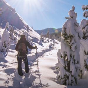 I was snapped to attention by the violent slam of the brakes as we fishtailed, did a complete 360 and slide up to a locked gate-those moves… even the Dukes of Hazzard boys would be proud of those tricks. The outdoorsman announced that it was time to hike the mountain to “HUNT” down our Christmas tree. We all hop out and I strap the baby to my back, he straps a kid to his back and then he drops the tailgate. Dear Lord!!! When did the depressed crazy man have time to load up hand saws, chain saws, an axe, a hatchet, and chain to pull the son of a bit## out of the ground if his arms got tired from sawing through the 3 foot wide base of a 60 foot tree…just to cut off the top…. After he secured his tree hunting supplies to his body, we began the death march up the mountainside. By “death march” I simply mean the act of following a crazed lunatic straight up cliffs, without water, without rest; which leaves a person gasping for air and about to hurl from the pure fun of mountain climbing in the snow with children and chain saws strapped to your back.