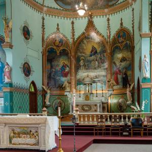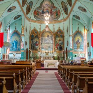 A short time later, at the turn of the century, one of the Jesuits was tasked with decorating the new sanctuary and began painting the murals for which the church is famous. His name was Brother Joseph Carignano, and he spent many years at the Mission as a cook and general handyman. He had no professional training in art but dedicated his spare time between his jobs to painting the murals inside. His paintings depict scenes from the Bible, as well as some saints, very much in the style of his native Italy. Behind the altar, he painted three scenes from the life of St. Ignatius Loyola, who founded the Society of Jesus (Jesuits) and to whom the church is dedicated. Above this is a mural of the Last Judgement and pictures of Mary and Joseph grace either side. Along the vaulted ceiling are paintings of various saints and Biblical scenes. All in all, Brother Crignano painted 58 murals, frescos and medallions during 1904 and 1905. This is, in fact, Montana’s very own “Sistine Chapel.”