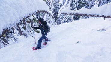 A sturdy footbridge across the South Fork a quarter mile from the trailhead provides good views up- and downstream. Afterward, be sure to stop at nearby Lone Mountain Ranch for an après-snowshoe drink in the saloon.