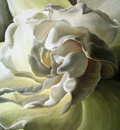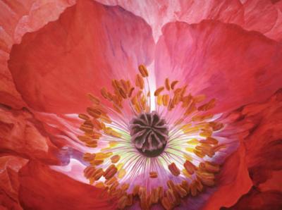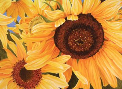 While Bern’s art is an outlet for his passion for fishing, Lexi’s paintings are a reflection of her zeal for flowers. (See www.lexisundell.com). She renders simple flowers into lifelike, dramatic images floating in the light of dawn. From the colorful, bold petals of a fiery red and purple poppy to the subtle softness of a fuzzy dandelion, her acrylic renditions bring to life the array of flowers that she grows in an 800-square-foot greenhouse and a garden that encompasses two lots.
