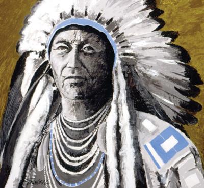 Satisfying his occasional desire to “get away from fish for awhile,” Bern began doing contemporary Indian warrior paintings. Having spent some of his childhood in Ashland, Montana, surrounded by the Crow Indian tribe, he took in many strong visual impressions that resonate in the “Warrior” series. His “Road Warrior” series features these Indian warrior images with modern highway pavement and lines—examples of his self-proclaimed “inventive and playful” approach to visual imagery.