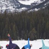 When we think of yoga, most of us visualize the classic setting of a dimly lit room with wall-to-wall mirrors, ambient music, and rows of jewel-tone mats spread across the floor. But more studios are taking their yoga outside as people seek the benefits of the outdoors: think yoga on stand-up paddleboards, yoga on the beach, yoga in the park… and here in winter-heavy Montana, yoga in the snow. Or, as it’s better known, “snowga”.