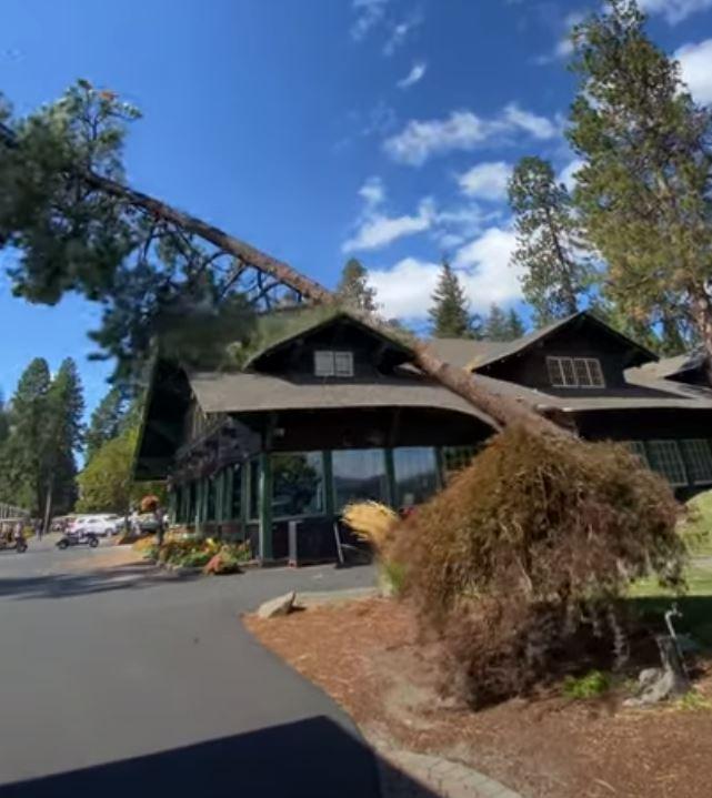And this time they were gale-force. On September 7, 2020, powerful winds knocked over a few trees near the Hayden Lake Country Club in Idaho, near Couer D'Alene. One tree, which appears to have been at least 80 feet tall, was blown so hard it uprooted and fell onto the country club pro shop. Luckily for us, and maybe for their insurance claim, someone was on hand to film.