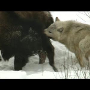 Wolves Hunting Bison