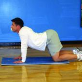 Cats and Dogs: Head up, shoulder blades in, breathe in; head goes down as you arch your back up and breathe out.
