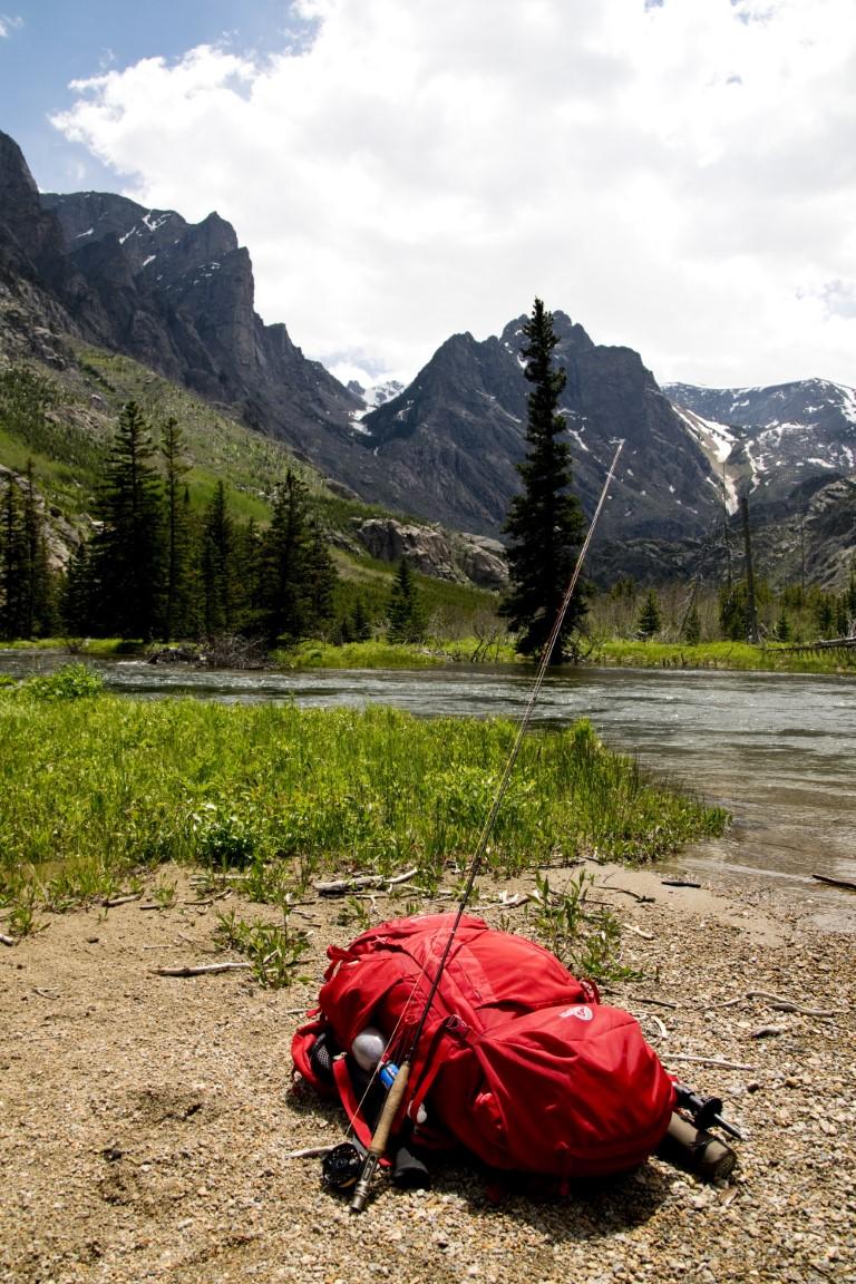 Can you share where you took the photo with the red backpack and the fishing pole in the foreground? It's a beautiful photo. Looks like a beautiful spot.