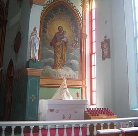 Established by Jesuits in 1854 on the Flathead Indian Reservation, the St. Ignatius Mission contains a beautiful series of 58 frescoes handpainted by the Mission’s cook, Br. Joseph Carignano, a self-taught artist. The Church is just off Route 93 midway between Polson and Missoula, near the National Bison Range. The Indian Museum and Gift shop are also worth visiting. (406) 745-3859.